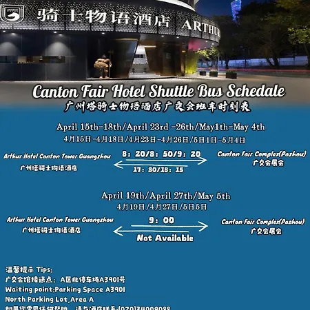Arthur Hotel Canton Tower Guanghzou is located 45 km from Guangzhou Baiyun International airport and within 5 minutes' walk of Zhujiang Film Factory bus stop.